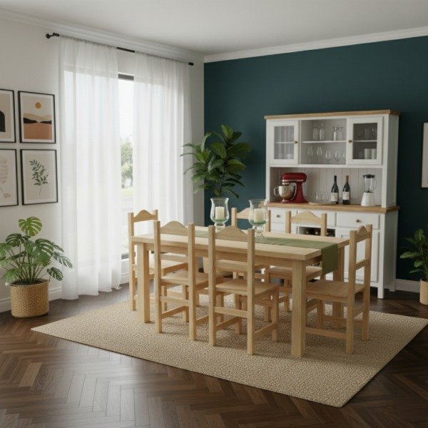 Mesa de comedor Eco 1,60 m x 70 cm con 6 sillas coloniales.